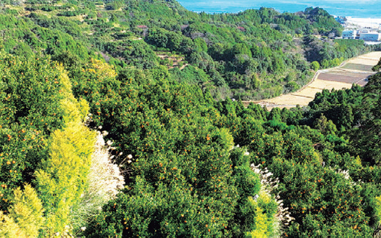 広大なポンカン畑が広がる山々、通称「ポンカン山」。ポンカンで彩られた山々は愛らしく、その山々からの眺めも絶景です!ポンカンの時期になると、東洋町のあらゆる場所でポンカンが販売され、まちの人々で賑わいます。